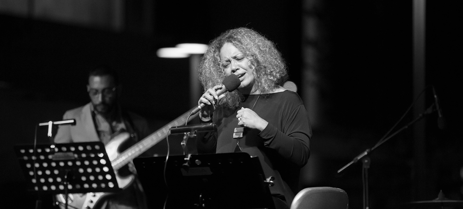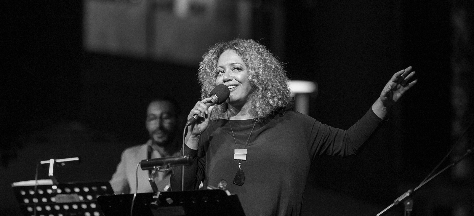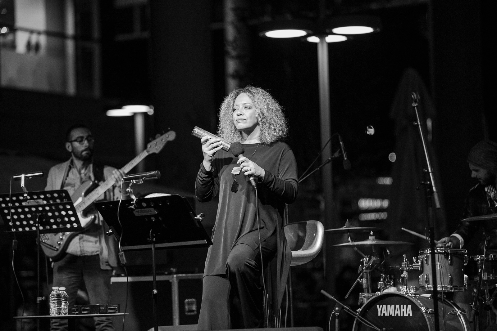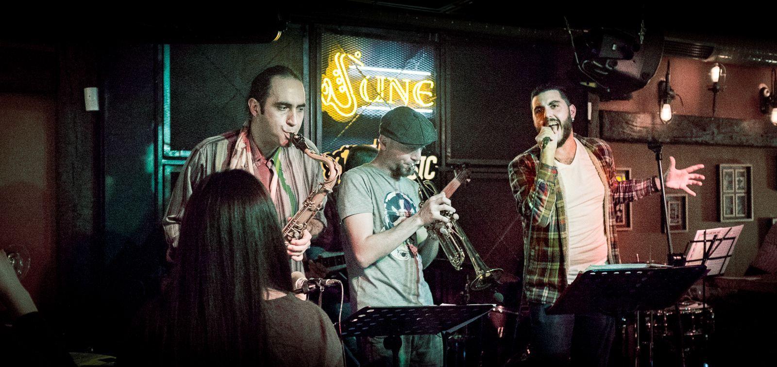 On stage.
